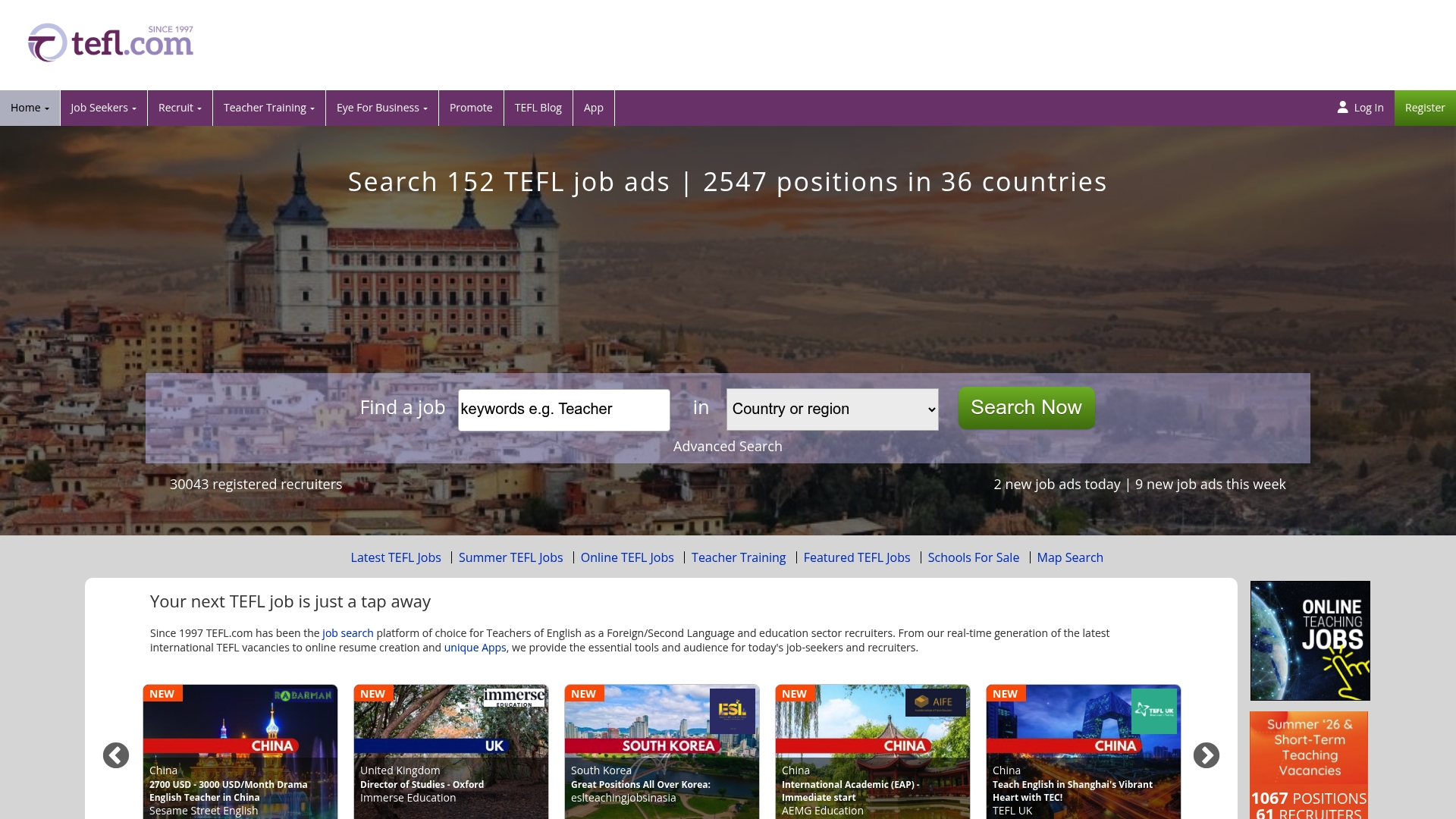 Extensive database of TEFL jobs across the world: You can search dozens of countries and role types from one interface.
