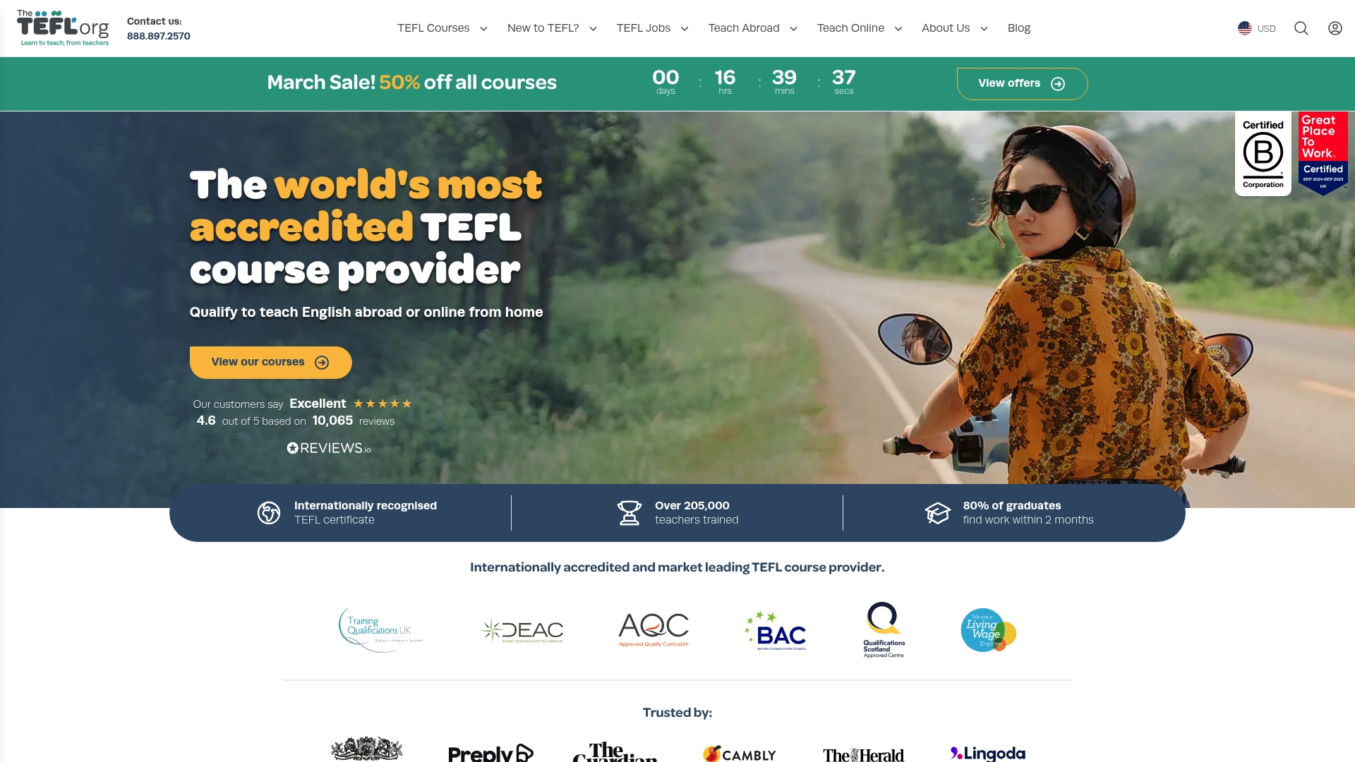 The TEFL Org is a market leading provider of TEFL courses that award internationally recognised certificates to graduates seeking to teach English abroad or online. Its strong accreditation, dedicated tutors and lifetime job resources make it a dependable choice for serious learners.
